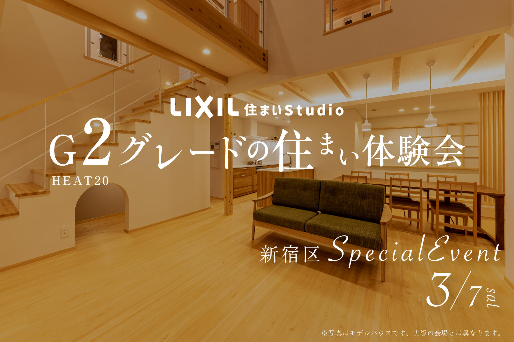 新宿の「リクシル住まいStudio」を特別に1日貸し切り、G2グレード相当の住まいを体感できるイベントを開催します。昭和・平成・令和、それぞれの住宅を再現した空間で、断熱性能やUA値の違いを実際に比較体験。小嶋工務店の住まいと同等性能のモデルルームを、リクシルのガイド付きでご案内します。数値だけでは分からない“あたたかさ”を、ぜひ身体で感じてください。