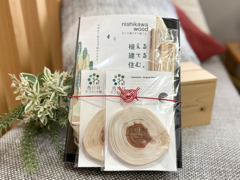 【ご来場特典】対象期間中にご来場いただいたすべての皆様へ、先着30名様に「西川材グッズつめあわせ」をプレゼント。